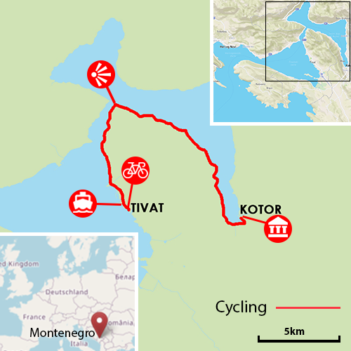 Join us in a cycling tour in the sunny Montenegro and explore Bay of Kotor from Tivat to Kotor. Tivat is the youngest town in Boka Bay. Once a modest and ordinary town, Tivat went through a major remodeling of its marina and the surroundings and today it is a place where the world’s jet-set resides and rests in the summertime. On a half way we will ride through Strait of Verige - the narrowest place of the Boka Bay. The average depth of the strait is 40 meters, and the width is not more than 250 meters. Despite its size, the Strait of Verige is quite restless due to the constant strong current. Natural and cultural-historical heritage of this srea was designated a UNESCO World Heritage Site in 1979. Its numerous churches, climate, beautiful sea and other jewels attract numerous visitors from all over the world.
