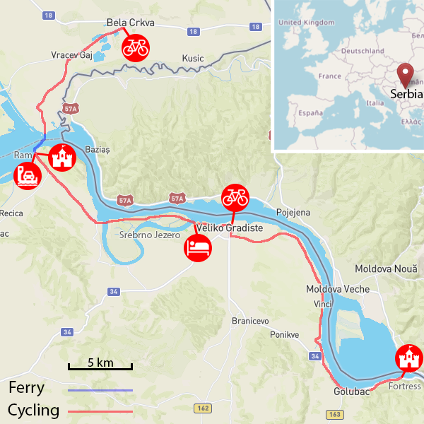 Cycling along the Danube to spectacular Golubac and Ram fortresses.