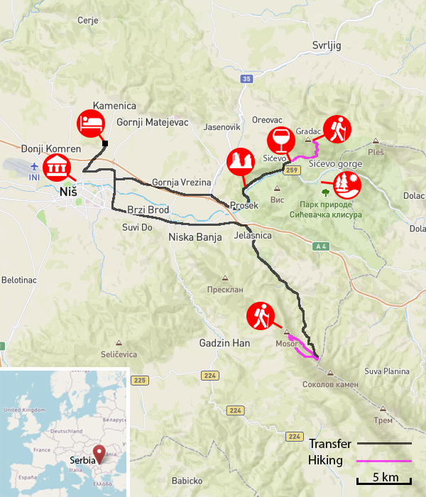 Arrival / departure transfer: from / to your home to / from the city of Niš. Please contact us if you wish us to organize you a private transfer